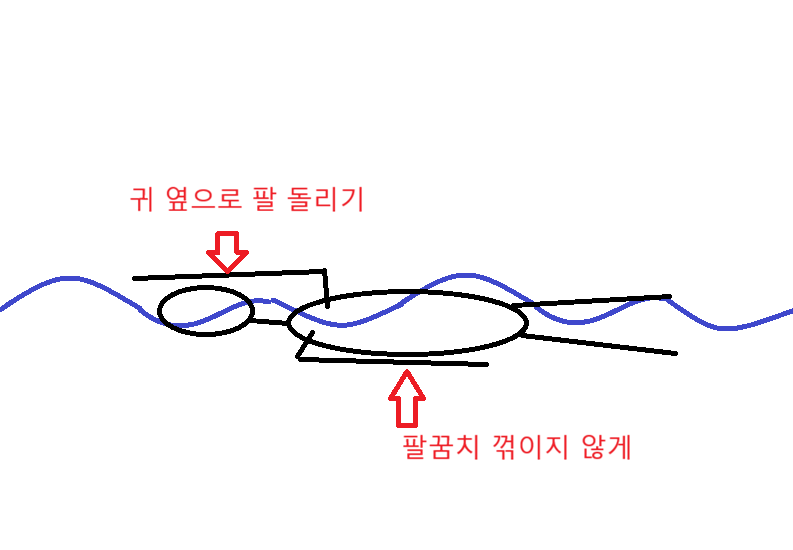 배영 팔 돌리기 할 때 팔이 귀 옆을 지나가게 돌려야 함